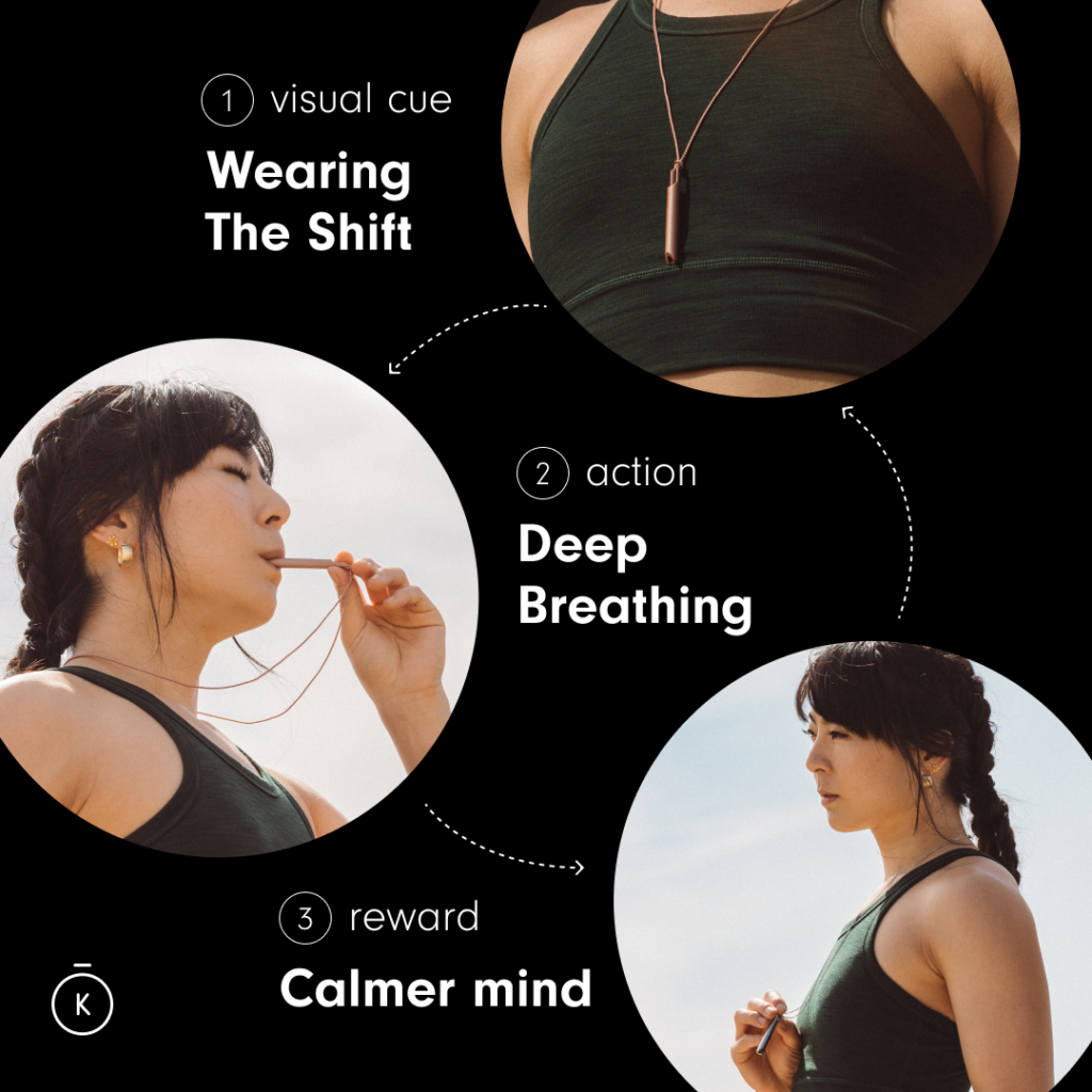 The answer is pretty simple physiology. Controlled exhalation activates the vagus nerve (which taps into your parasympathetic nervous system), signaling to the nervous system that it’s time to relax. This single insight ignited two years of research, development, and fine-tuning, leading to The Shift’s perfect dimensions for an eight-to-ten-second exhale—the scientifically supported sweet spot for stress relief.